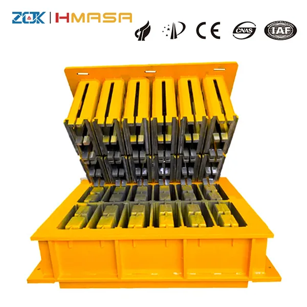 Sa mga tuntunin ng functional na disenyo, isinasaalang-alang ng ZCJK Hollow Brick Mould ang pagiging praktikal at ekonomiya. Ang tumpak na pagkakalibrate ng layout ng hollow hole na posisyon ay binabawasan lamang ang 30% ng paggamit ng hilaw na materyal ngunit tinitiyak din na ang tapos na brick ay may compressive strength na MU10 standard, na maaaring ligtas na magamit para sa wallasonry, road base backfilling, fence building at iba pang mga sitwasyon. Kasabay nito, ang molde ay gumagamit ng modular splicing structure, na may matatag na snap-in connection, gap ≤ 0.5mm, ang isang tao ay maaaring kumpletuhin ang isang set ng mold assembly sa loob ng 10 minuto, na 60% na mas mahusay kaysa sa tradisyonal na m, na epektibong nagpapaikli sa ikot ng proyekto.